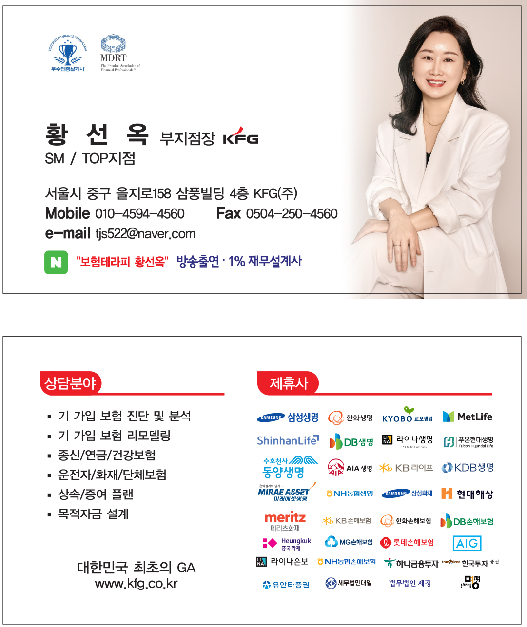 보험전문가로서 10년이상 되면서 고객들에게 도움을 드리고 감사인사 받을때 가장 보람을 느끼고 있습니다. 제 고객을 놔두고 이직해서 고아 고객을 만들지 않겠다는 약속을 지키기위해 매일매일 최선을 다합니다. 보험테라피 황선옥 대표 기억해주세요